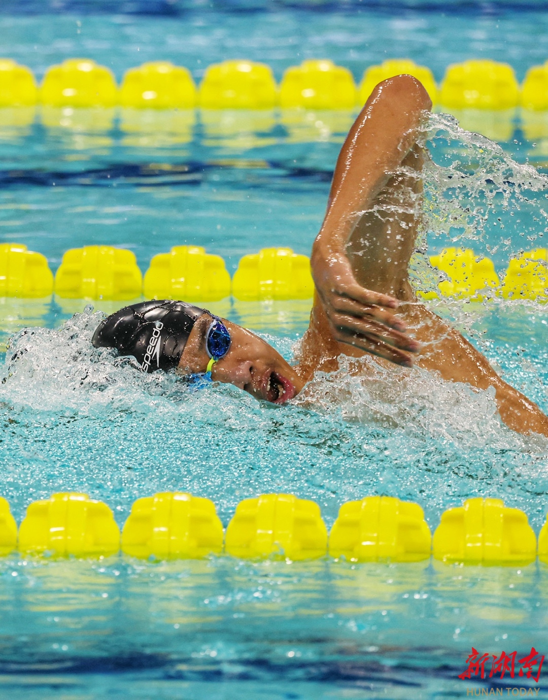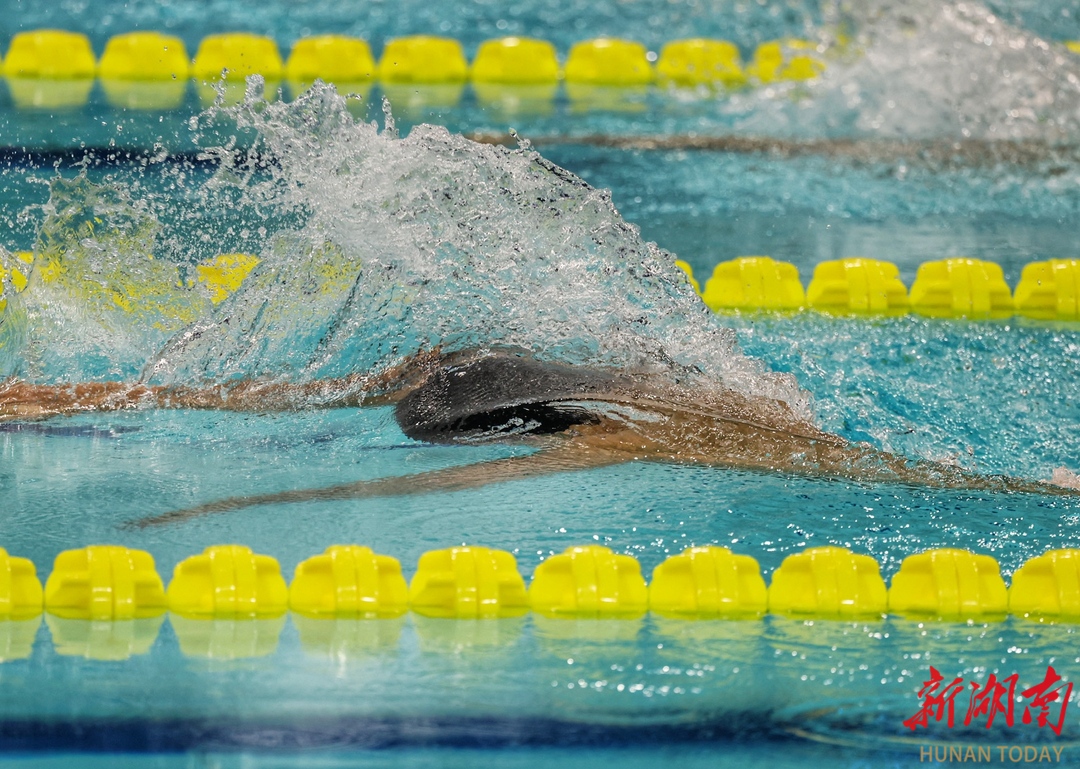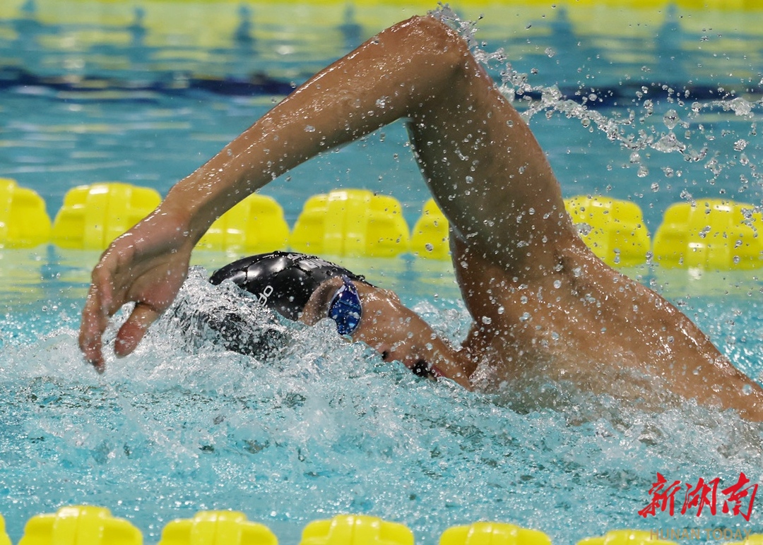 11月13日晚,深圳大運中心游泳館,第十五屆全運會男子800米自由泳決賽中,本次比賽大放異彩的山東選手張展碩以7分46秒69的成績獲得金牌,并打破了全國青年紀錄。 華聲在線全媒體記者 童迪 劉濤 攝影報道