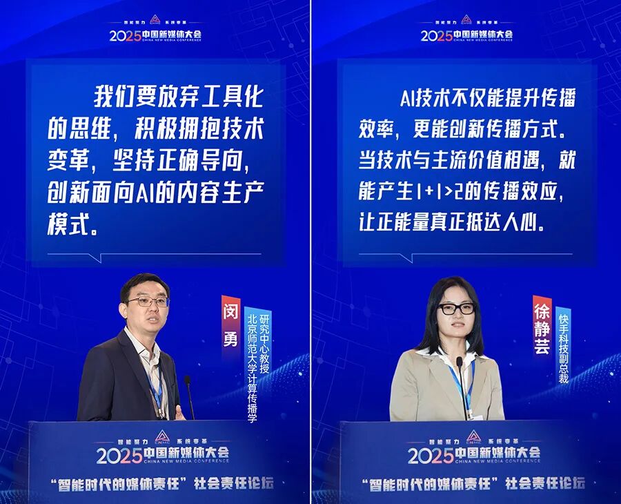 在“技術(shù)·大模型守護正能量”篇章,北京師范大學(xué)計算傳播學(xué)研究中心教授閔勇、快手科技副總裁徐靜蕓從技術(shù)與倫理方面出發(fā),解析智能時代媒體社會責(zé)任的新內(nèi)涵和科技企業(yè)應(yīng)秉持的價值導(dǎo)向。每個篇章均設(shè)有現(xiàn)場互動投票環(huán)節(jié),實時生成“責(zé)任云圖”,直觀呈現(xiàn)觀眾對智能時代媒體責(zé)任關(guān)鍵議題的認知分布,增強論壇互動性與共識可視化。