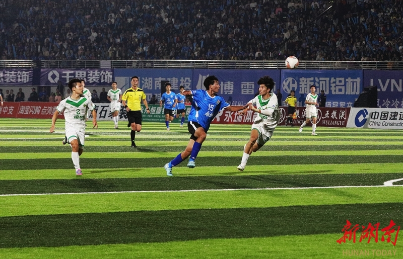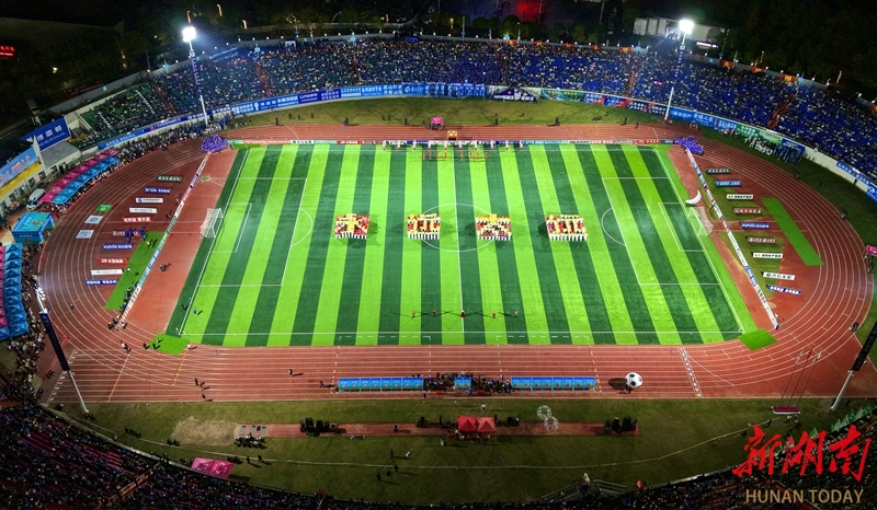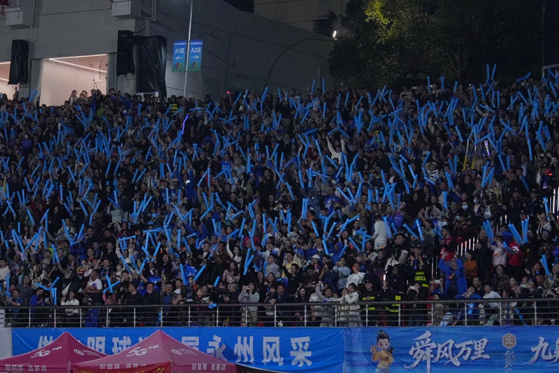 11月15日晚,永州市體育場(chǎng),文藝演出精彩紛呈。當(dāng)晚,湘超聯(lián)賽第十輪比賽,永州隊(duì)主場(chǎng)迎戰(zhàn)郴州隊(duì)。最終,永州隊(duì)4比0戰(zhàn)勝郴州隊(duì)。 文佳星 攝(湖南圖片庫(kù))