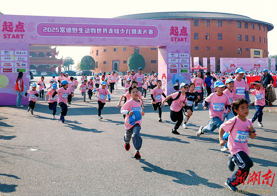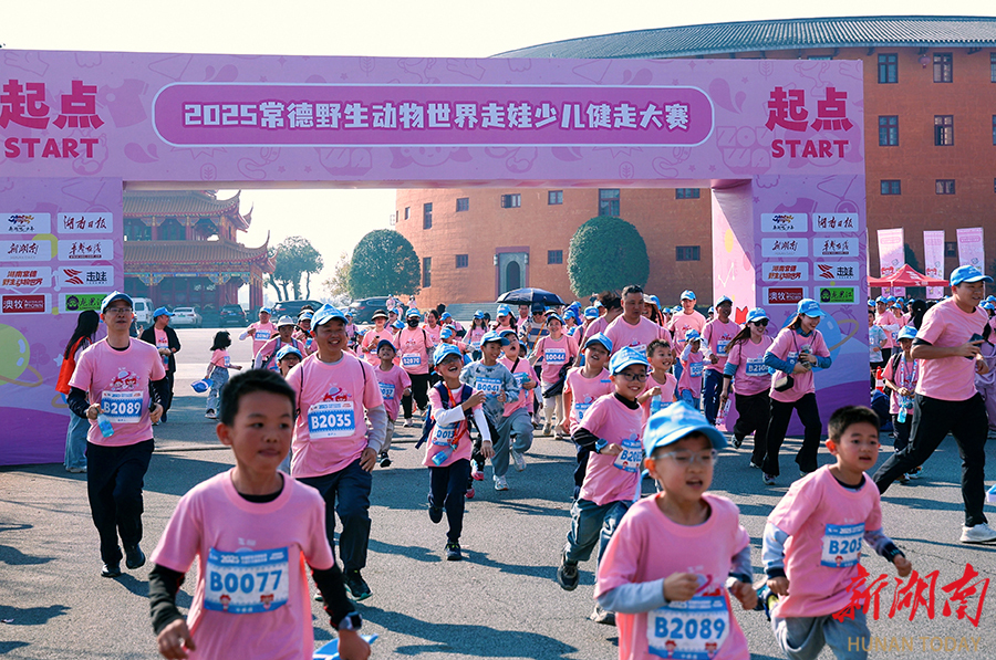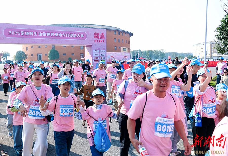 11月16日,2025常德野生動物世界走娃少兒健走大賽活力開賽。來自長沙、張家界、常德、益陽 、湘西等11個市州的近1000組家庭2500多名參賽者,穿行在動物王國里,用腳步書寫關于勇氣、陪伴與發現的故事。 胡博 攝(湖南圖片庫)