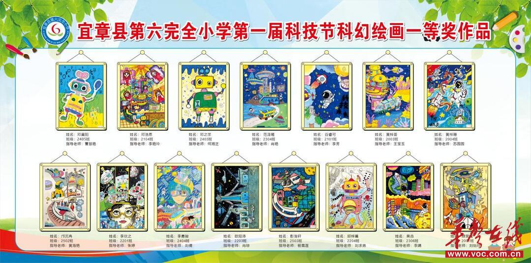 一至六年級(jí)33個(gè)班級(jí)的學(xué)生踴躍參與科幻繪畫創(chuàng)作。孩子們以8開素描紙為畫布,圍繞科技創(chuàng)新、人工智能等主題盡情暢想,一筆一畫勾勒出對(duì)未來科技的奇妙構(gòu)想。最終,66幅優(yōu)秀作品如期匯集,在開幕式前完成布展,成為校園里一道充滿想象力的科技風(fēng)景線。