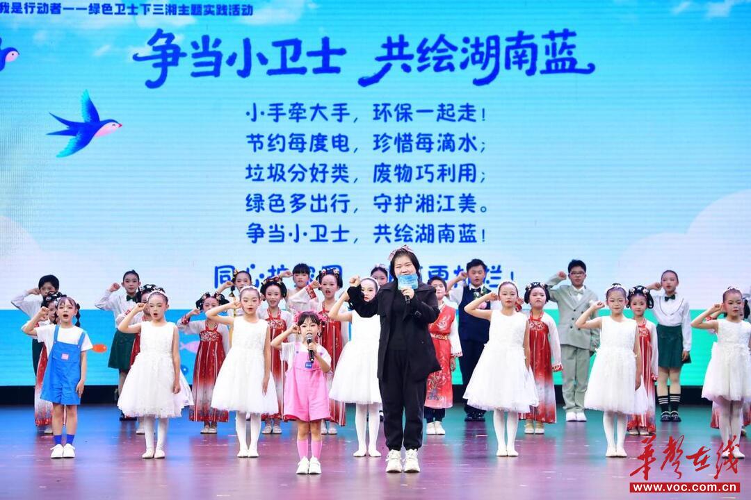 (宣讀《爭當小衛士 共繪湖南藍》倡議書。 通訊員供圖)