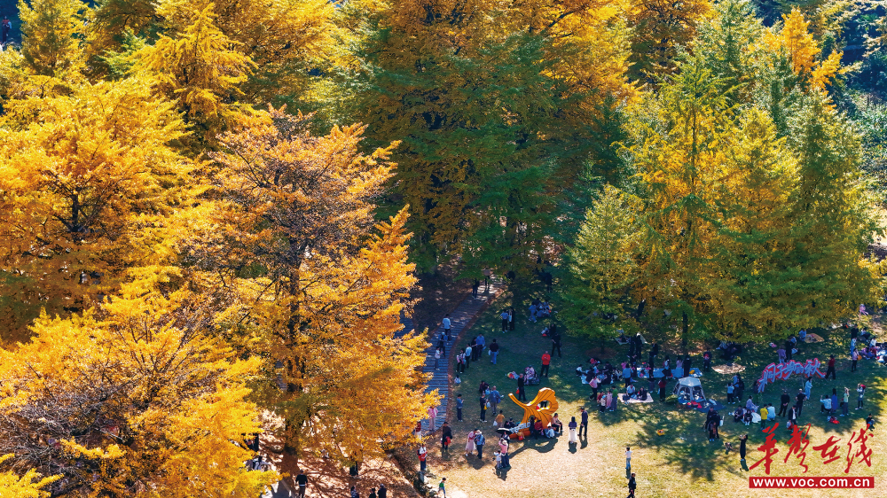 11月16日,雙牌縣茶林鎮桐子坳村,游客在銀杏林賞景游玩。該景區擁有3000余株原生銀杏,其中217株樹齡超百年,2023年入選全國最美古樹群。