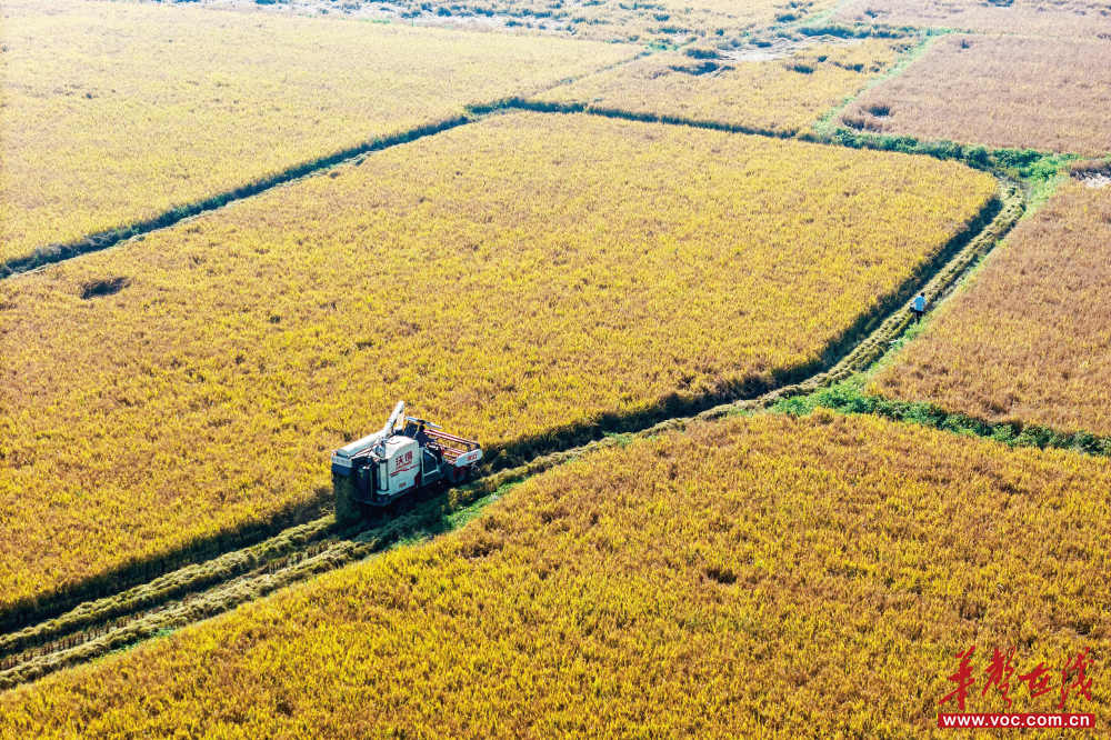 11月16日,雙峰縣梓門橋鎮合心村,農民駕駛著收割機收割晚稻。初冬時節,該縣晚稻進入收獲尾聲,收割機在金黃稻田中穿梭作業,確保秋糧顆粒歸倉。