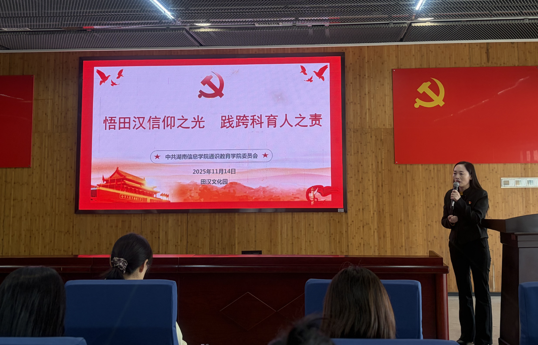 在文化園技術中心多媒體教室,全體黨員集中觀看了田漢文化園宣傳片。周曼曼同志現(xiàn)場講授“微黨課”,結(jié)合田漢精神與教育使命,引導大家思考新時代黨員教師的責任與擔當。通識教育學院院長、黨總支紀檢委員艾艷紅同志在發(fā)言中表示,希望大家讓那股向上的“中國力量”薪火相傳,將田漢精神融入教育教學、科研管理和學生指導全過程,并鼓勵大家持續(xù)深化組織共建、資源共享、業(yè)務共進,把黨建成效轉(zhuǎn)化為育人實效和發(fā)展動能。