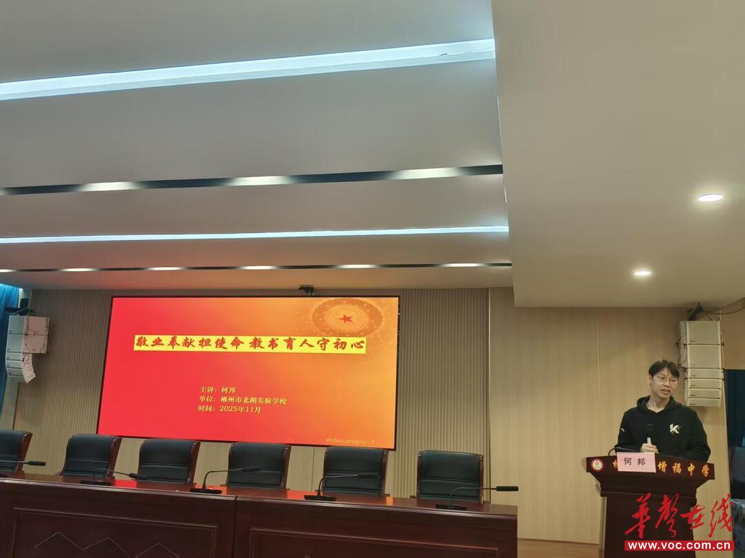 華聲在線11月18日訊(通訊員 郭燕青 李方程 陳媚)11月17日下午,郴州市北湖區“教育家精神萬里行——講述我的育人故事”師德師風宣講活動在郴州市增福中學舉行。
