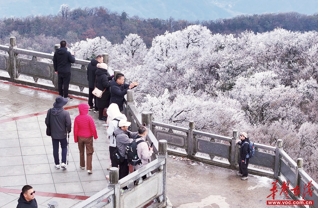 11月18日,張家界天門(mén)山景區(qū)迎來(lái)大面積霧凇奇觀。游客們紛紛拿出相機(jī)手機(jī),記錄這難得的南方冰雪美景。