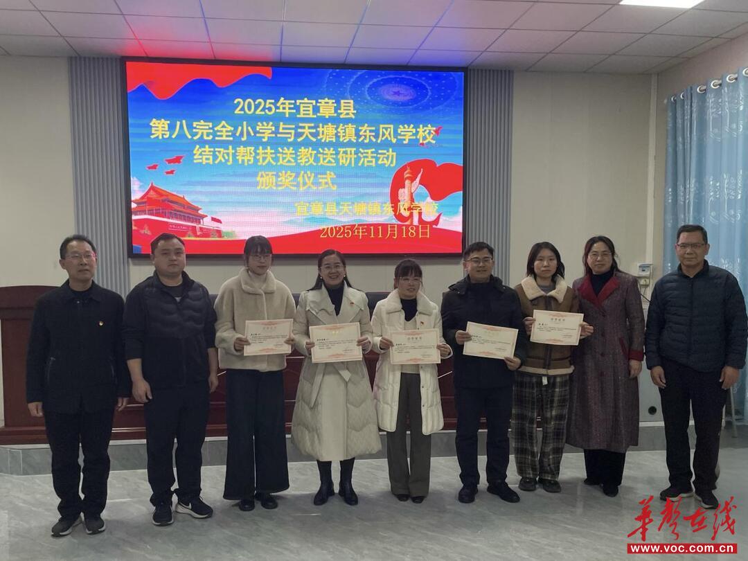活動最后,宜章縣教育局基教股股長吳志武、宜章縣第八完全小學黨支部書記歐志勇和天塘鎮東風學校黨支部書記蔡由利分別對本次活動進行了總結,他們充分肯定了這次送教送研的成果,并為授課教師頒發榮譽證書。
