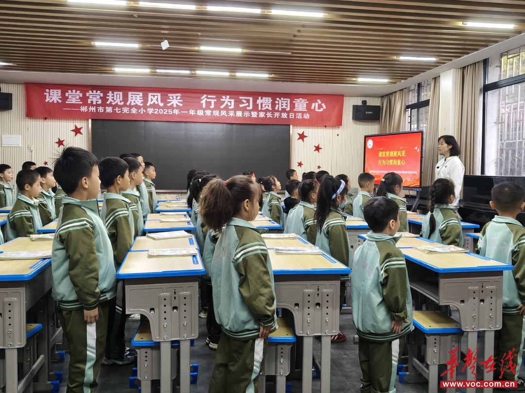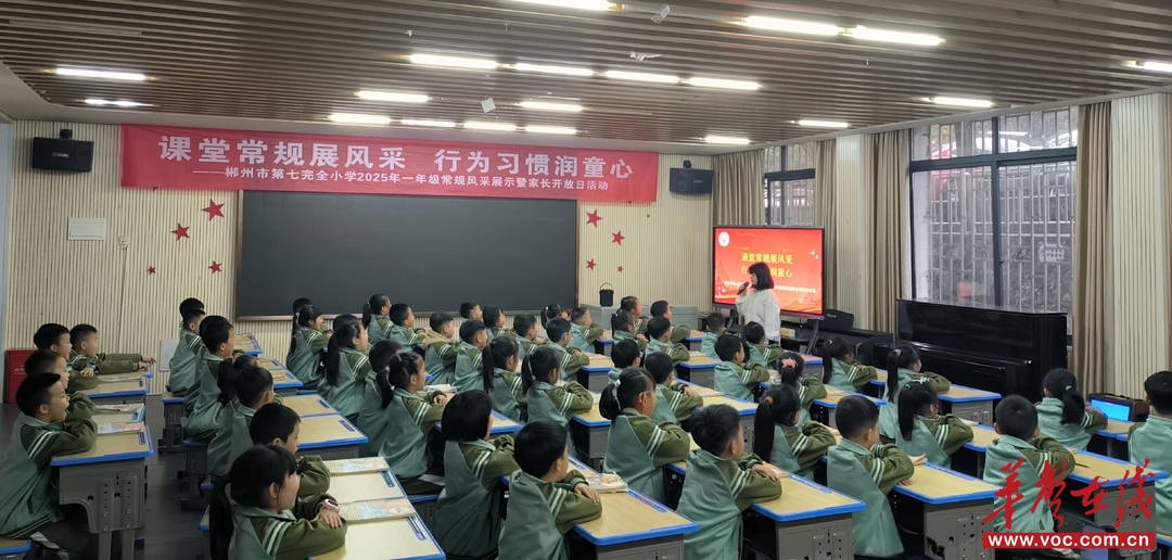 華聲在線11月20日訊(通訊員 潘玉 何慧娜 李小芬)11月17日,郴州市第七完全小學舉辦以“課堂常規展風采,行為習慣潤童心”為主題的一年級課堂常規風采展示暨家長開放日活動。活動通過集中展示、現場評比的方式,立體呈現了一年級新生行為習慣養成的階段性成果,是學校夯實養成教育、促進家校共育的一次生動實踐。