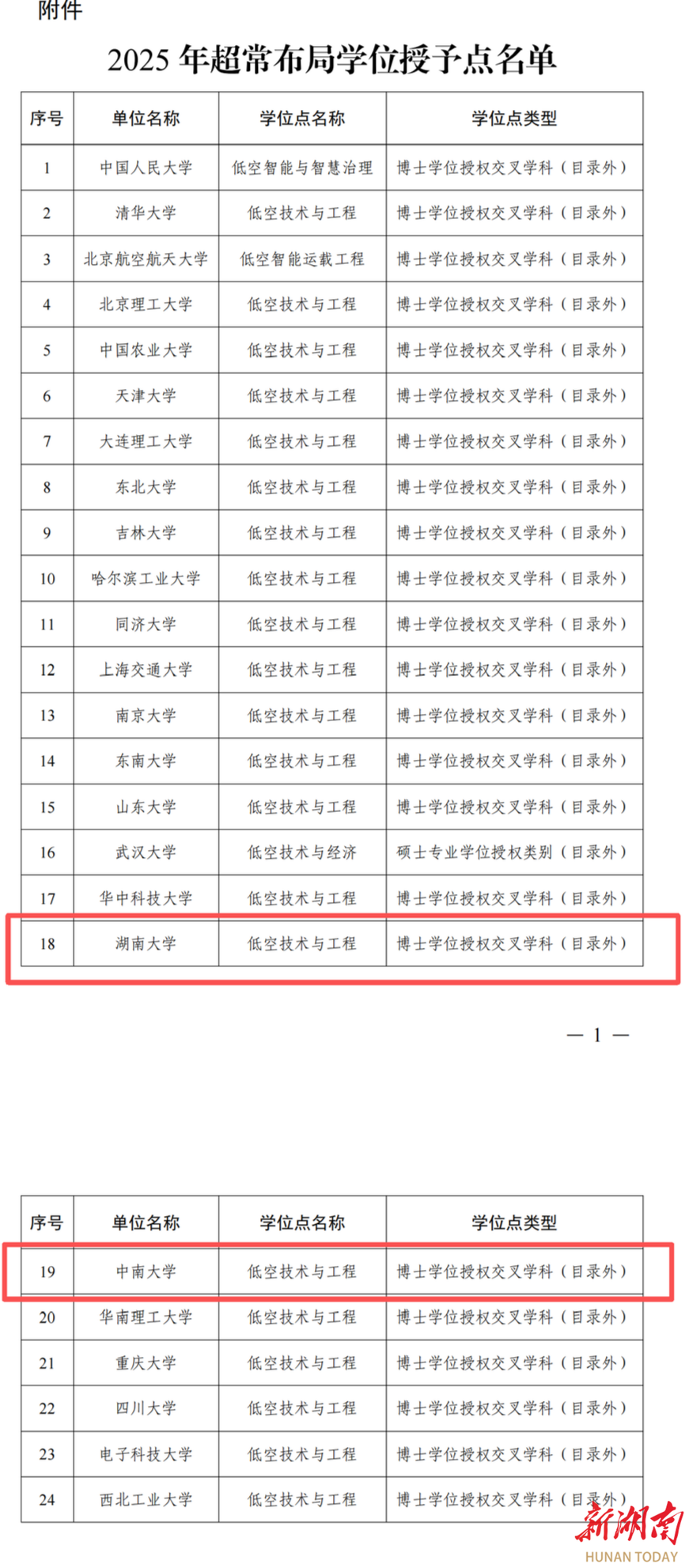 據(jù)悉,2024年湖南大學(xué)與國(guó)防科技大學(xué)一同獲批“學(xué)位授權(quán)自主審核單位”,躋身全國(guó)37所擁有該權(quán)限的高校行列。