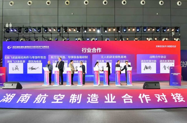 湖南飛沃新能源與德國(guó)海格曼、江南工業(yè)集團(tuán)與湖南航城實(shí)業(yè)、湖南翼飛時(shí)代與南京拓恒、湖南明翼創(chuàng)新與湖南新翼智能達(dá)成多項(xiàng)技術(shù)及市場(chǎng)合作,進(jìn)一步拓展產(chǎn)業(yè)鏈協(xié)同創(chuàng)新空間。