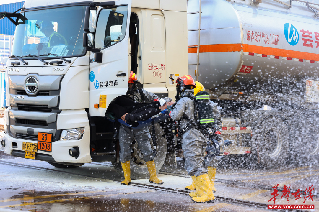 華聲在線11月21日訊(通訊員 張婷 全媒體記者 李梓瀟)“緊急停車,車長,我是信號樓,鐵路專用線1號道口有一輛疑似裝有危化品貨車發(fā)生傾覆事故,不明液體泄漏……”今日,長沙市交通運(yùn)輸局在城陵磯港口集團(tuán)長沙新港公司開展2025年長沙市鐵路專用線道口危化品事故綜合應(yīng)急演練,重點(diǎn)檢驗(yàn)鐵路專用線各崗位工作人員與多單位協(xié)同作戰(zhàn)能力,為鐵路運(yùn)輸筑牢安全防線。