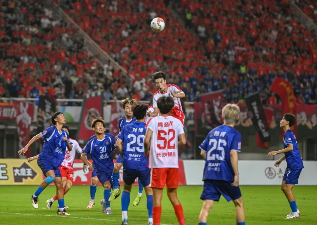 9月7日晚,2025年湖南省足球聯賽首戰,最終長沙隊主場以2比0戰勝婁底隊。 湖南日報全媒體記者 郭立亮 攝接過沉甸甸的會旗,對湖南而言,既是莫大的機遇,更是全方位的檢閱。