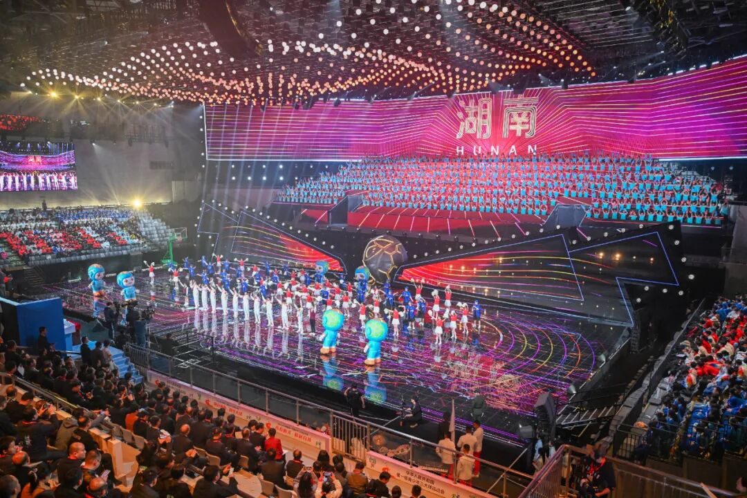 2024年11月20日晚,中華人民共和國第一屆青少年三大球運動會開幕式在長沙賀龍體育館舉行。 湖南日報全媒體記者 郭立亮 童迪 攝2029年,新中國將喜迎八十華誕,全運會恰逢七十載輝煌,注定將載入史冊。