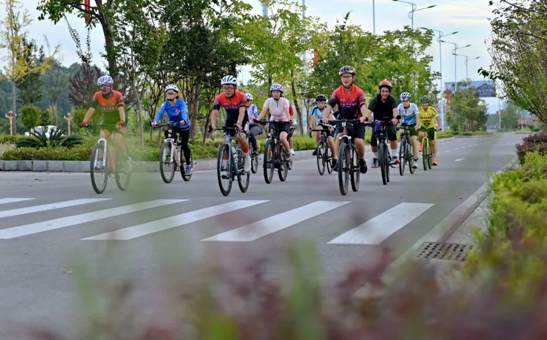 9月16日,騎行愛好者在洞口縣雪峰街道城東大道騎行。滕治中 攝全產業鏈的蓬勃發展,必將讓體育消費成為拉動內需的強勁引擎,讓沉睡的市場潛能轉化為高質量發展的實際動能。