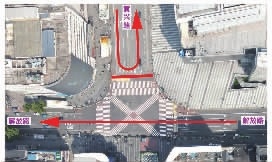 解放路黃興路口往東約100米位置至蔡鍔路口路段允許機(jī)動車雙向通行。蔡鍔路與解放路交叉口東進(jìn)口允許機(jī)動車東往南左轉(zhuǎn),禁止機(jī)動車東往西直行、東往北右轉(zhuǎn);南進(jìn)口允許機(jī)動車南往東右轉(zhuǎn),禁止機(jī)動車南往西左轉(zhuǎn)、南往南掉頭、南往北直行;北進(jìn)口交通措施不調(diào)整。