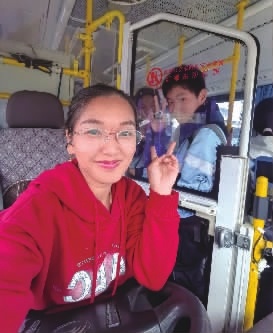 ▲王燕和坐車的學生們開心合影。(非駕駛狀態拍攝)
