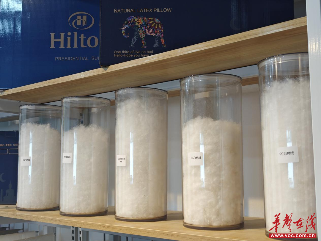 (多種不同品質(zhì)羽絨供顧客選擇 羅江龍攝)