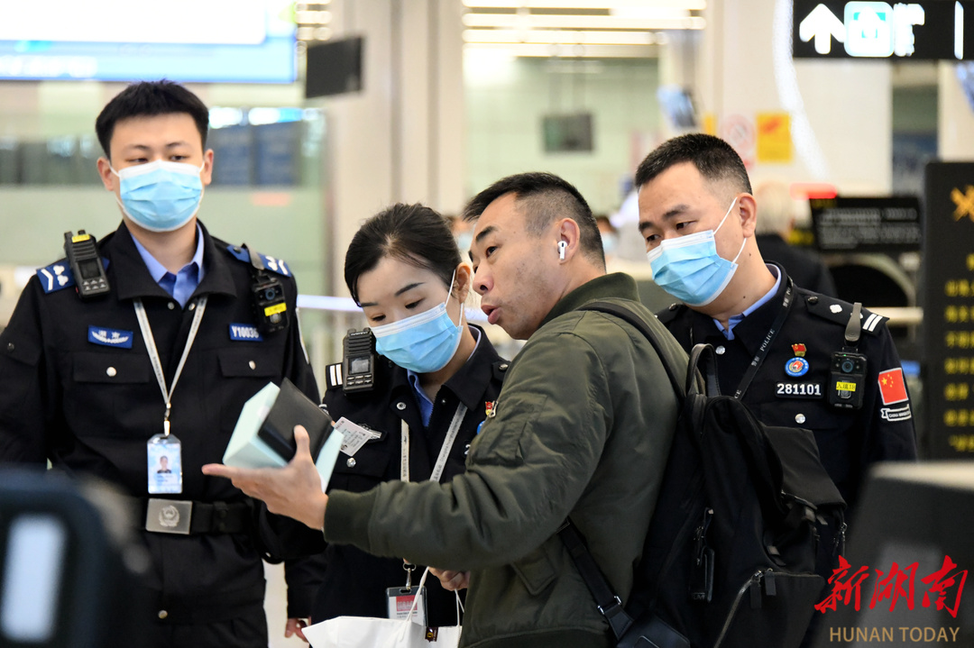 11月20日,長沙黃花國際機(jī)場口岸,民警正在解答旅客咨詢