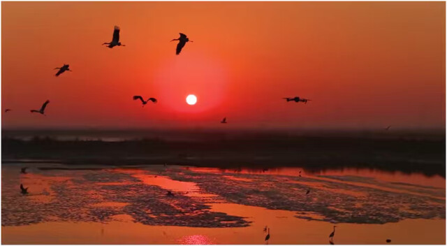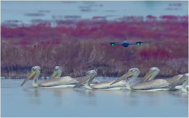 (無人機(jī)航拍鳥類的現(xiàn)場畫面。)