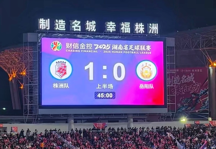 華聲在線11月23日訊(記者 張永瓊 張咪 通訊員 謝朝琳)11月23日晚,株洲體育中心,湘超第十一輪株洲隊主場迎戰岳陽。上半場開場不到兩分鐘,株洲隊11號沈柏屹進一球,目前上半場已結束,株洲隊VS岳陽隊比分維持在1:0。