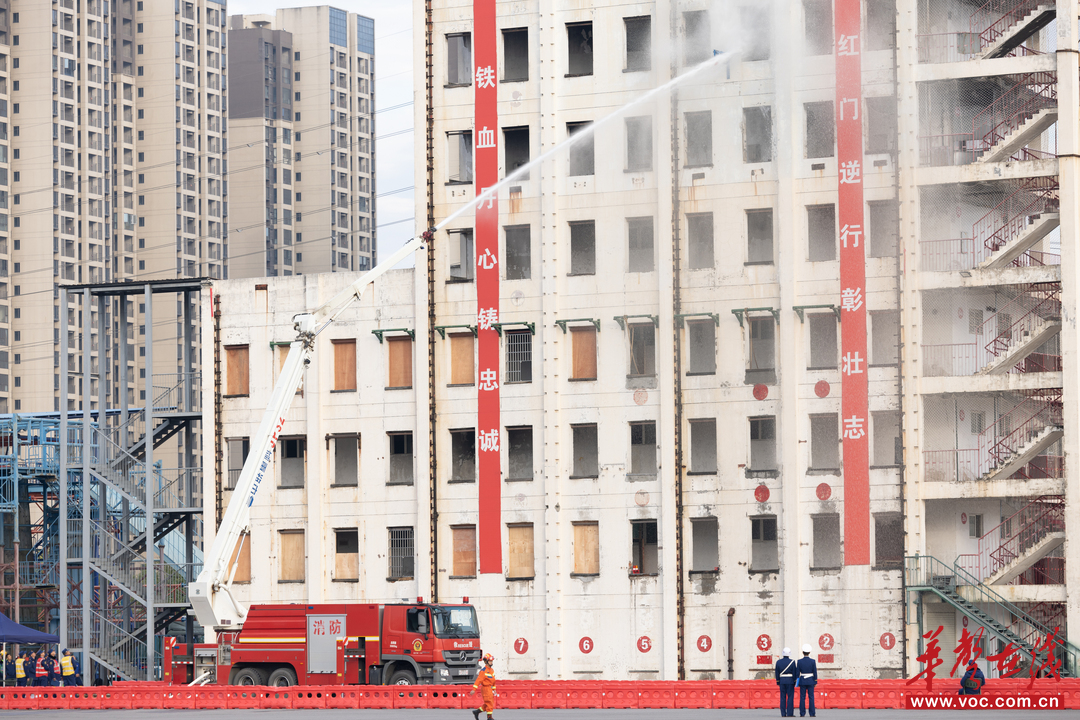 舉高噴射消防車精準(zhǔn)射水操比武科目現(xiàn)場(chǎng)。通訊員供圖