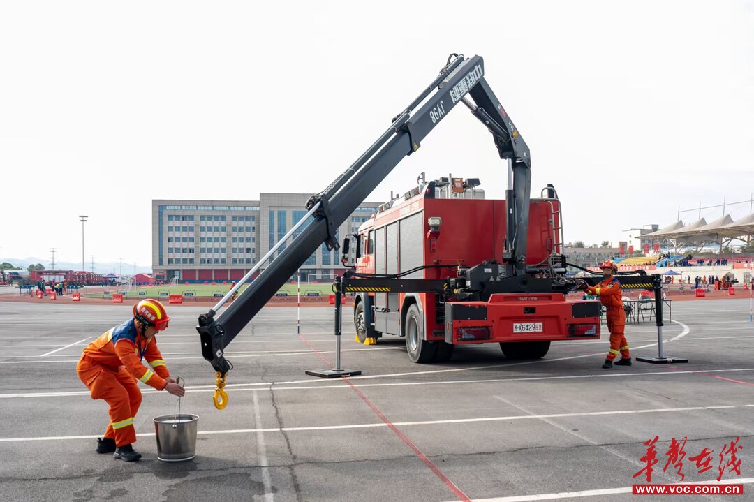 搶險(xiǎn)救援車吊臂牽引比武科目現(xiàn)場(chǎng)。通訊員供圖