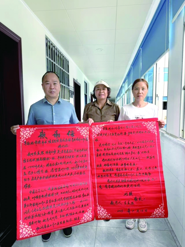 李紅英第一時間告知龔美琴辦證的流程和所需資料清單,當時正值持續高溫天氣,考慮龔美琴身體不便,讓其少跑路。李紅英主動聯系當地自然資源所和社區干部到現場調查核實,協調基層工作人員補充完善相關資料。當龔美琴拿到不動產權證書時感慨道:“這不僅僅是一本證書,更是政府給我們歸鄉游子的定心丸!我深切感受到貴局‘群眾事無小事’的責任擔當,你們用行動詮釋了政策有力度、服務有溫度、辦事有速度。”辦結幾天后,她將這一封儀式感滿滿的感謝信送到了武陵區自然資源局。