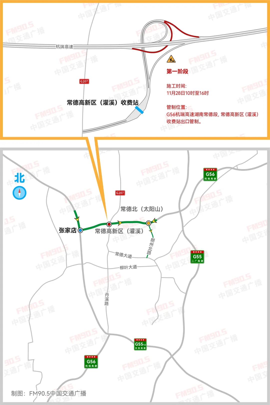 管制位置:G56杭瑞高速湖南常德段,常德高新區(qū)(灌溪)收費(fèi)站出口管制。