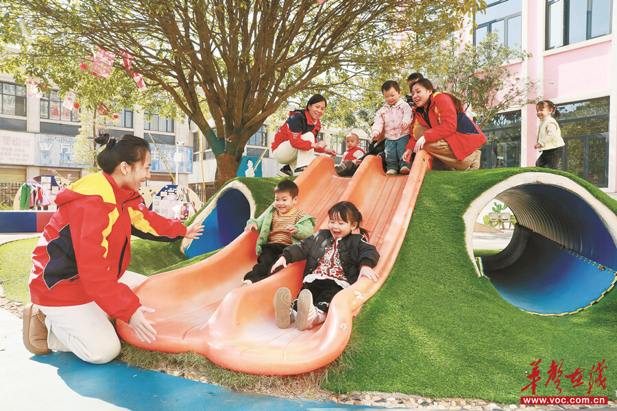 11月24日,新田縣潤興幼兒園瑪利婭蒙特梭利托育早教中心,老師帶著小朋友在參加戶外活動。作為湖南省首批托育示范機構(gòu),該中心聚焦“3歲以下嬰幼兒照護”民生實事,有效緩解家庭育兒壓力。
