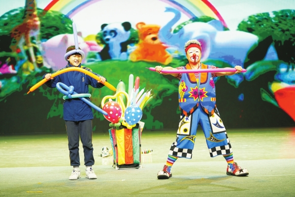 雜技主題晚會《國風少年》表演中的互動節目《快樂小丑》。華聲在線全媒體記者 雷鴻濤 攝