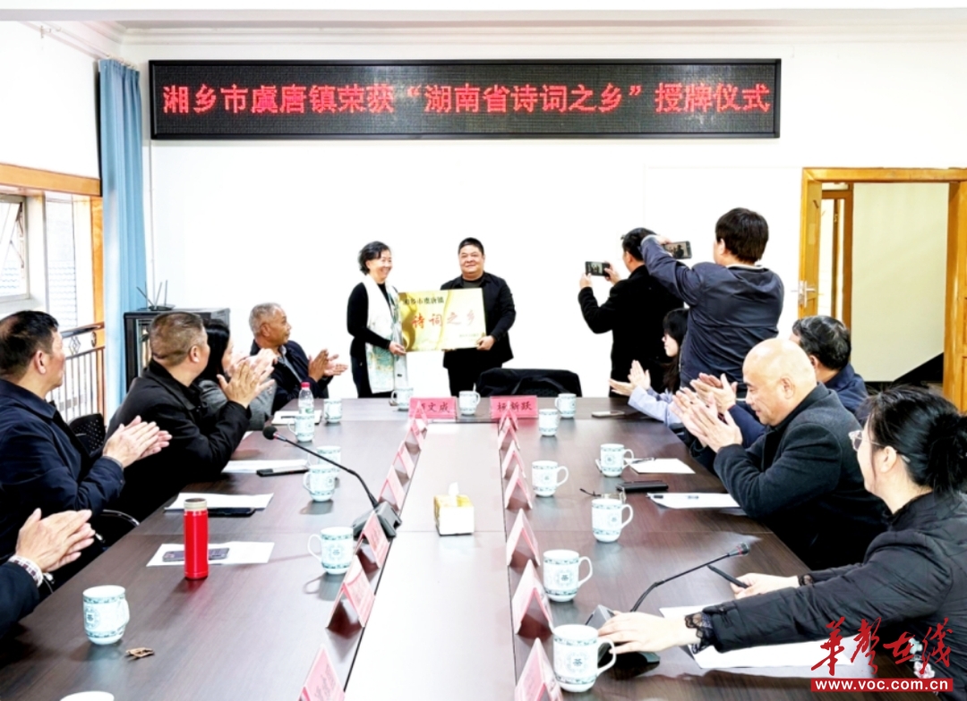 華聲在線11月25日訊(通訊員 文湘 熊俊)11月21日,湘鄉市虞唐鎮被正式授予“湖南省詩詞之鄉”稱號。這一榮譽的背后,是虞唐鎮深耕詩詞文化、推進詩教普及的長期堅守,更是當地以文化軟實力助推高質量發展的生動實踐。
