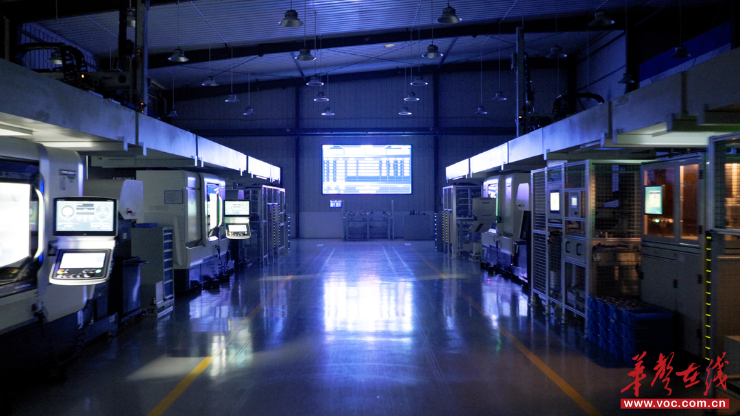 在華銳精密工具車間,智能技術全面落地的場景正在上演:機械臂靈活舞動,AGV物流車有序穿梭,刀具部件在流水線上被精準加工打磨,這座先進的“黑燈工廠”幾乎不見工人的身影。