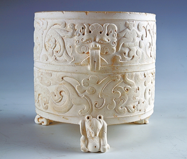 神獸紋玉樽。湖南省博物館 供圖直筒形,雕刻有許多神獸和仙人圖案,飄逸生動(dòng),氣勢(shì)恢宏,神獸紋玉樽是劉弘生前珍藏的古物。它是東漢玉雕的代表作,是目前所見(jiàn)最為精美奢華的漢代玉容器之一,有“玉樽王”之稱。