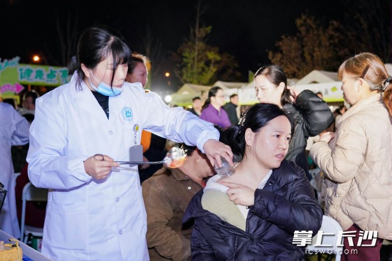 夜市現(xiàn)場(chǎng),居民體驗(yàn)中醫(yī)項(xiàng)目。均為天心區(qū)衛(wèi)健局 供圖