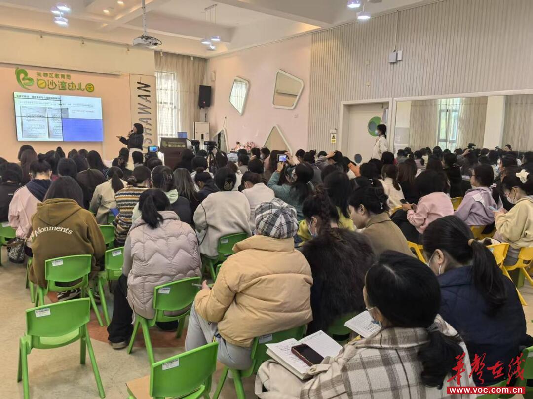 華聲在線11月27日訊(通訊員 丁嘉)11月26日上午,由長沙市芙蓉區教育科研中心主辦、芙蓉區學前教育丁嘉名師工作室、芙蓉區教育局白沙灣幼兒園承辦的“看見此刻,研以致用——芙蓉區幼兒園即時性教研案例(故事)分享會”在白沙灣幼兒園順利舉行。湖南省教育科學研究院基礎教育研究所原副所長、特級教師周叢笑,長沙市教科院學前教育研究與指導中心主任薛婷婷,芙蓉區民辦教育科科長張慧超,望城區萬潤濱江幼兒園園長周錦等專家蒞臨指導。全區學前教育名師工作室成員及各幼兒園教師代表百余人參與活動。