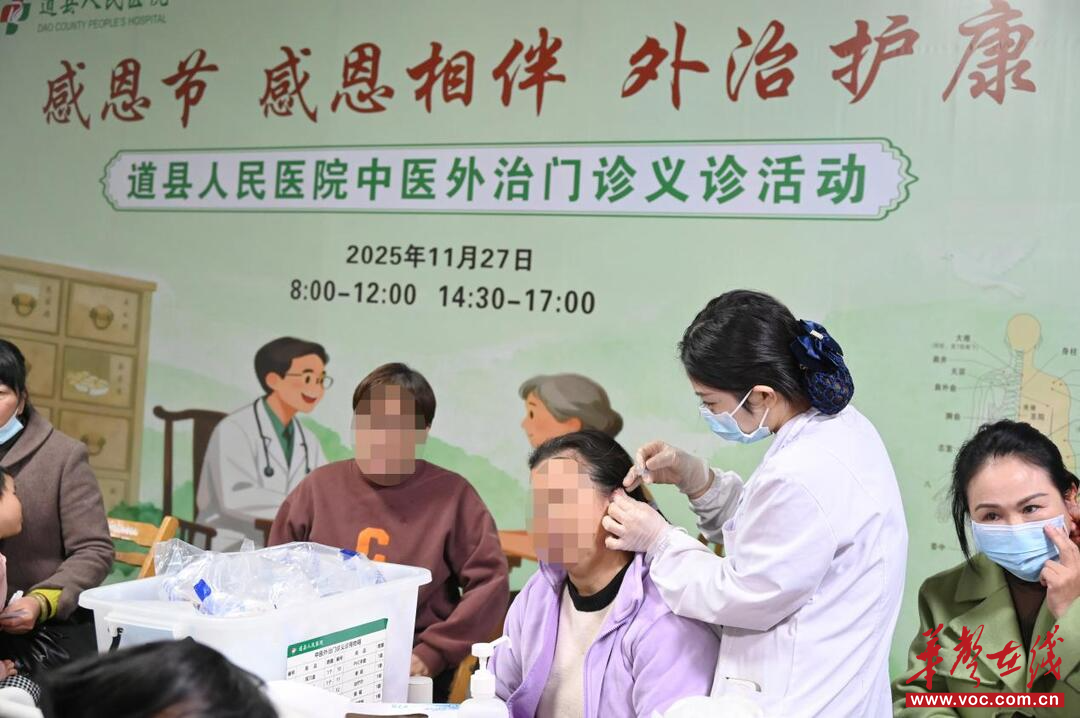 華聲在線11月29日訊(通訊員 柏華林 熊小英 熊昭宇)11月27日,道縣人民醫院中醫外治門診開展“感恩相伴,外治護康”主題義診活動,用傳統中醫的獨特魅力與暖心服務,為群眾送上一份特殊的健康禮物。活動從8時持續至17時,吸引了眾多市民前來咨詢體驗,現場人頭攢動,氣氛溫馨熱烈。